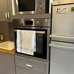 Das Apartment AppartINGOLstadt verfügt über eine komplette Küche, die unter anderem mit einem Herd und einem Geschirrspüler ausgestattet ist.